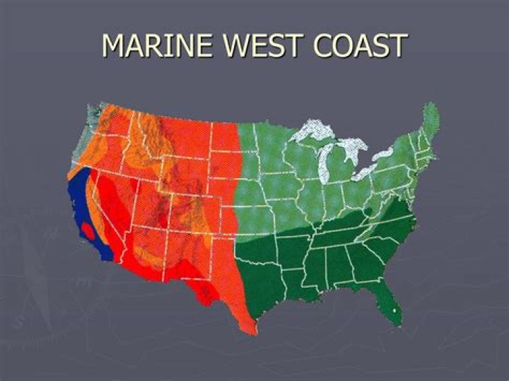 What is marine west coast climate and which part of the USA does it cover?
