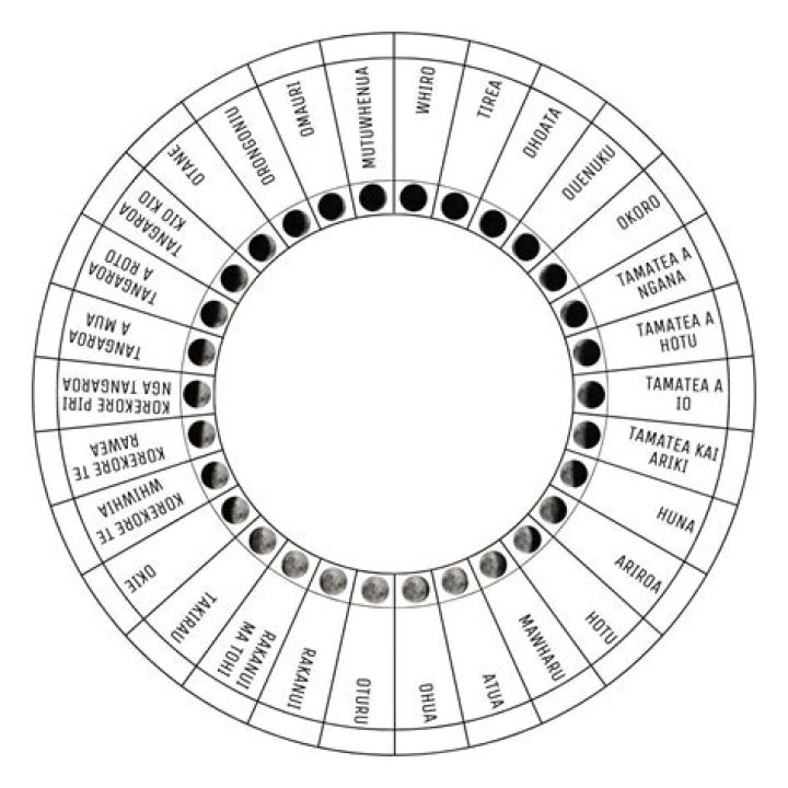 The maramataka is the traditional Māori calendar. Each year has 12 months based on the cycles of the moon. These lunar months begin and end when the moon is full, and last for about 30 days. … Each month is represented by a star or stars.
