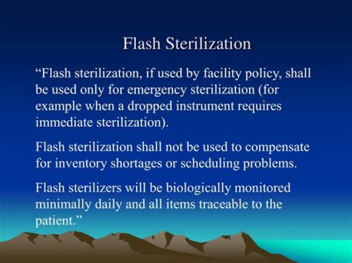 Flash sterilization is considered acceptable for processing cleaned patient-care items that cannot be packaged, sterilized, and stored before use. It also is used when there is insufficient time to sterilize an item by the preferred package method.How long is a flash cycle?
