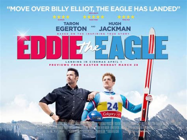 Despite finishing last in the 70m jump with 60.5 metres (198 ft), Eddie sets a British record. His triumphant celebrations win the audience over, and the media embrace him as Eddie “The Eagle”. … British Olympic officials grudgingly accept him.