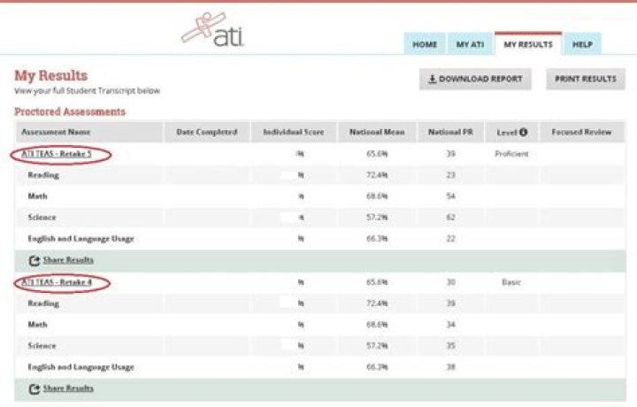 What is a proficient score on ATI teas?