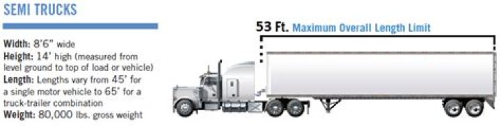 On average, semi-trucks in the United States measure around 72 feet long, 13.5 feet tall, and 8.5 feet wide. They can grossly weigh about 80,000 pounds. If you opt for a used semi-truck, you even have more options in terms of length, height, width, as well as sleeper cab or day cab sizes.