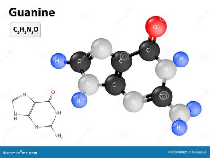 Guanine is a nitrogenous base that makes up part of the nucleotides in DNA and RNA, but that’s not all. Nucleotides containing guanine can power chemical reactions and are involved in signaling inside the cell. Other forms of guanine can be found in bird droppings and even cosmetics.