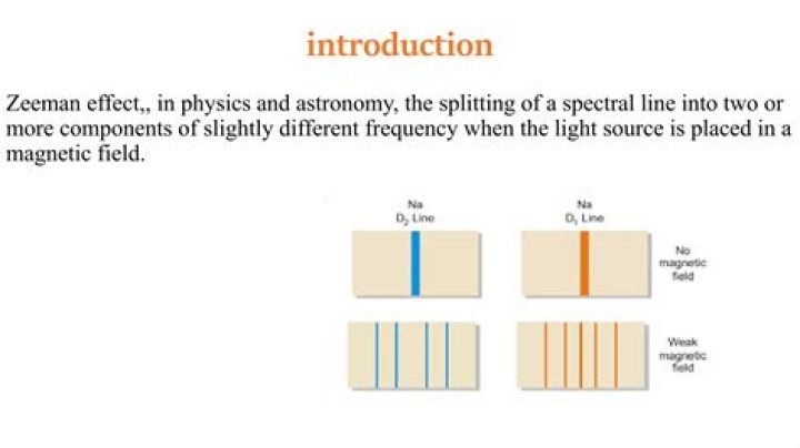 CHEMISTRY GLOSSARY Zeeman effect is the splitting of the lines in a spectrum when the source of the spectrum is exposed to a magnetic field. The effect was discovered in 1896 by the Dutch physicist Pieter Zeeman (1865-1943) as a broadening of the yellow D-lines of sodium in a flame held between strong magnetic poles.