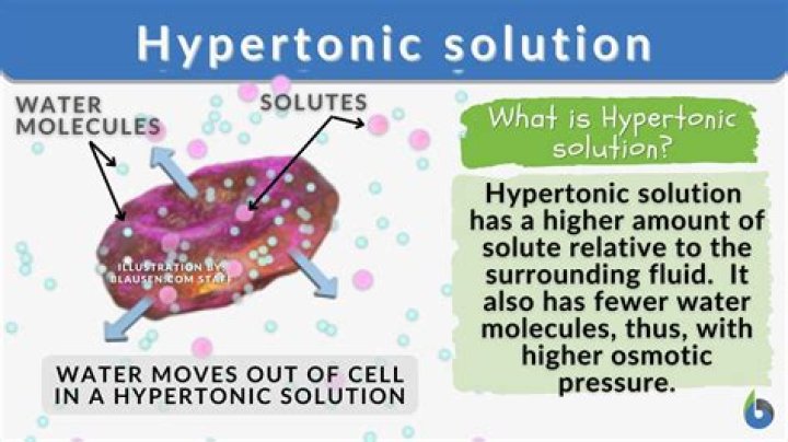 Hypertonic solutions have less water ( and more solute such as salt or sugar ) than a cell. Seawater is hypertonic. If you place an animal or a plant cell in a hypertonic solution, the cell shrinks, because it loses water ( water moves from a higher concentration inside the cell to a lower concentration outside ).