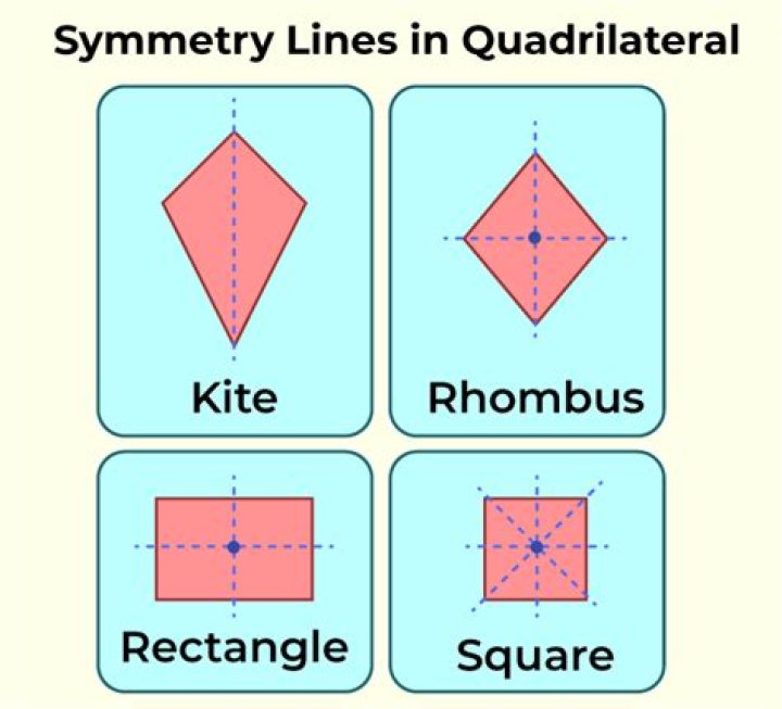 Square (all sides equal, all angles 90°)Rectangle (opposite sides equal, all angles 90°)Irregular Quadrilateral4 Lines of Symmetry2 Lines of SymmetryNo Lines of Symmetry