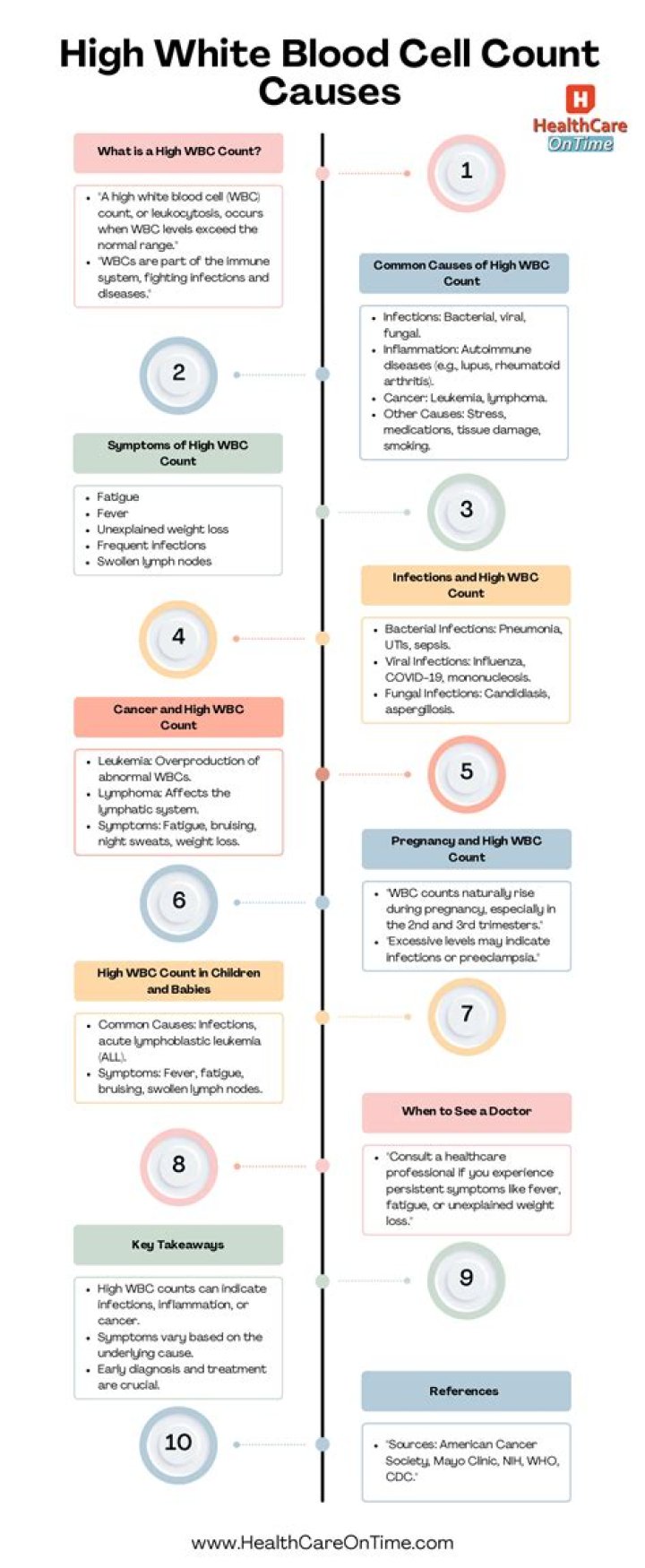 A low WBC count can be serious because it increases your risk of developing a potentially life-threatening infection. Seek prompt medical care if you have a low WBC count and have signs of an infection, such as a fever, swollen lymph nodes, sore throat, or skin lesions.What cancers cause low WBC?