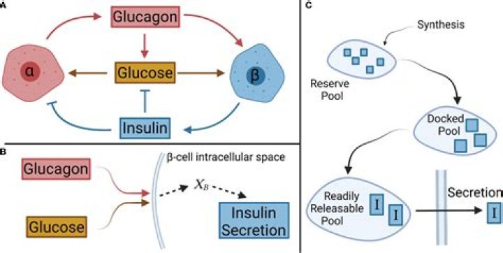 The control of glucagon secretion is multifactorial, reportedly regulated by γ-aminobutyric acid (9, 10), low glucose (11), and sympathetic innervation (12) and by intra-islet insulin (13–15) or cosecreted zinc (16, 17).