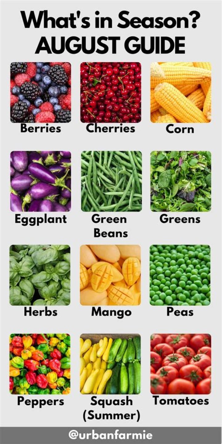 Warmer weather crops will be at peak deliciousness in August. This includes beans, corn, cucumbers, melons, okra, tomatoes, and summer squash. These iconic summer veggies will be tender and juicy and taste great when harvested in August.