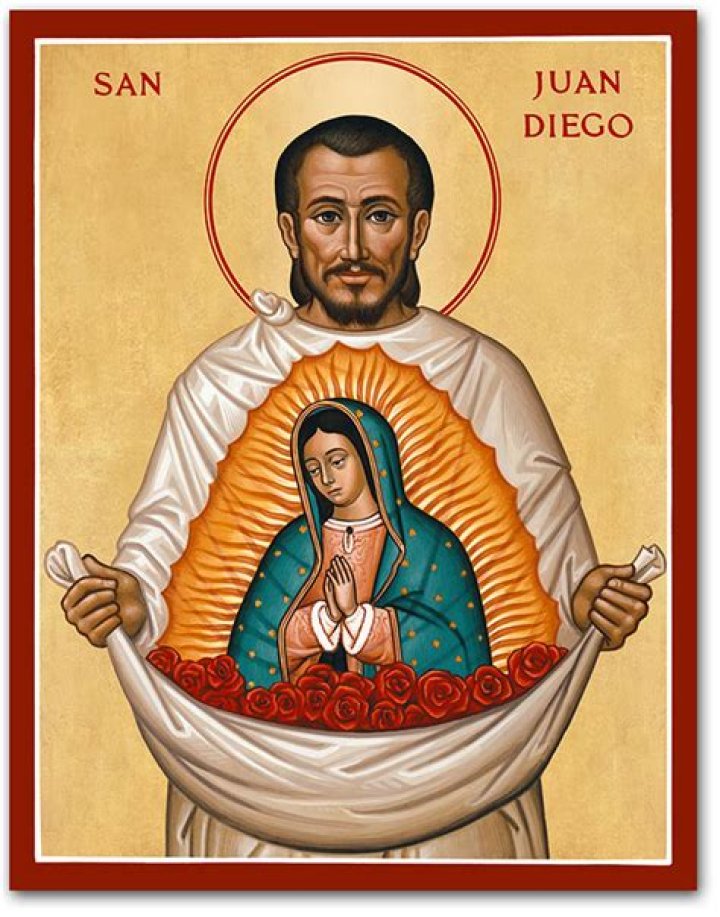 Juan Diego is a native of Mexico who was one of the first indigenous people to convert to Christianity. It is believed he was visited by the Virgin Mary at Tepeyac four times in December 1531.