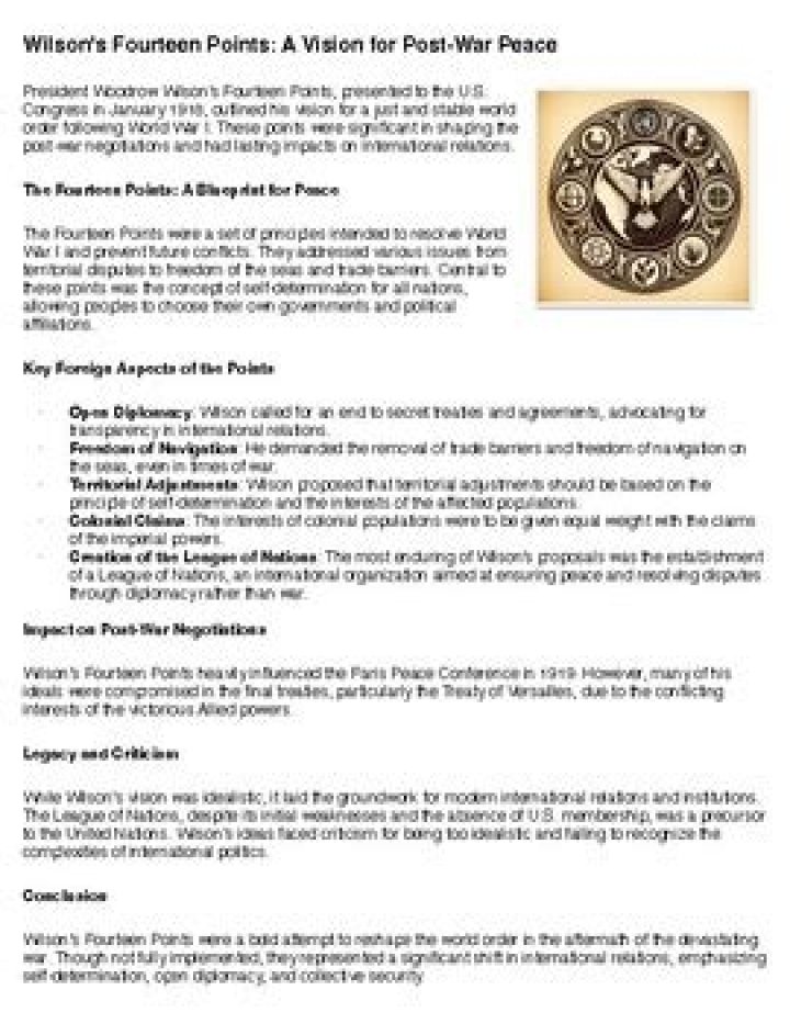 Article first time published onWhich of the following did Wilson's Fourteen Points for post Great War peace include?