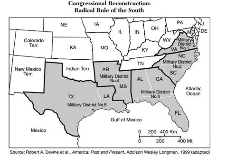 Radical Reconstruction included a Reconstruction Act that “threw out state governments that had refused to ratify the Fourteenth Amendment.” It used the Military Reconstruction Act to divide the southern states into five military districts and gave military rulers “nearly unlimited power” to enforce laws the way they …