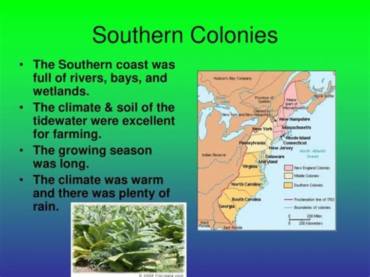 The southern colonies had the best climate and land for farming. It was warm almost all year long.