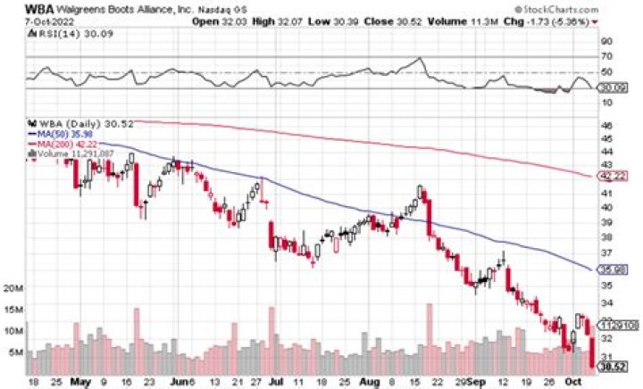 Walgreens Boots Alliance Inc (Symbol: WBA) made the “Dividend Channel S.A.F.E. … Enduring — at least two decades of dividend payments. The annualized dividend paid by Walgreens Boots Alliance Inc is $1.91/share, currently paid in quarterly installments, and its most recent dividend ex-date was on 08/19/2021.