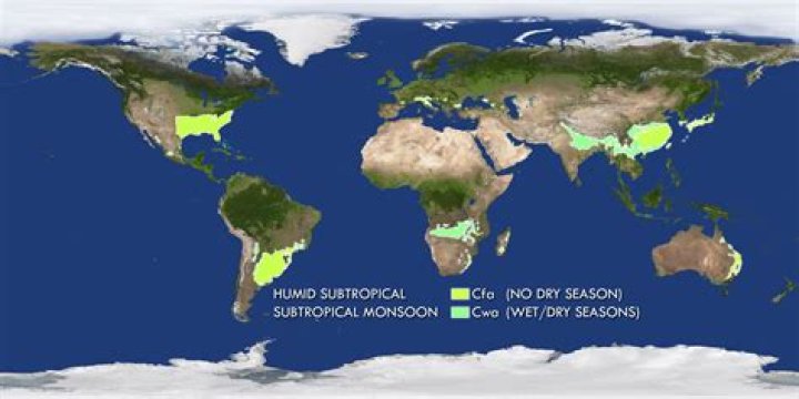 Humid subtropical climates can be found in the southeastern United States, southeastern South America, coastal southeast South Africa, eastern Australia and eastern Asia from northern India through south China to Japan.