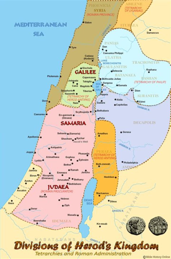 Sometime earlier Antipas had built the city of Tiberias on the western shore of the Sea of Galilee, partly modeling it after a Greek city, but, though he erected statues in the Greek manner in his palace, his coins bore no images.
