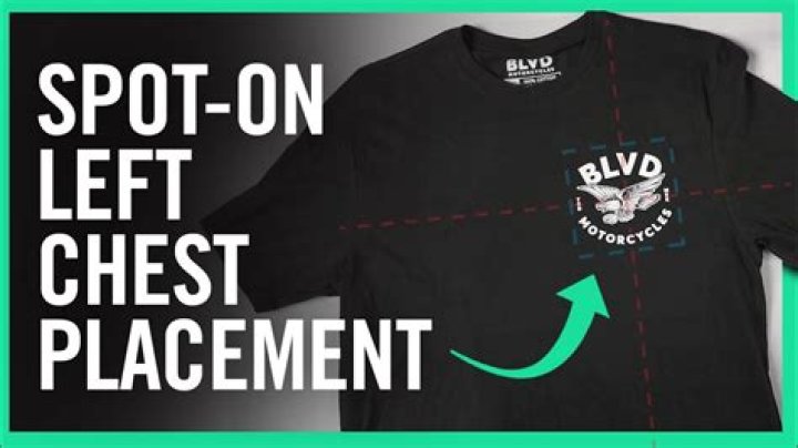 Left Chest This is the most common position for logo placement, making it the most recognizable to the consumer eye. From the left shoulder seam, measure 7″-9″ down and center between the center and side seam of the shirt. Another option is to measure 4″-6″ to the right of center.