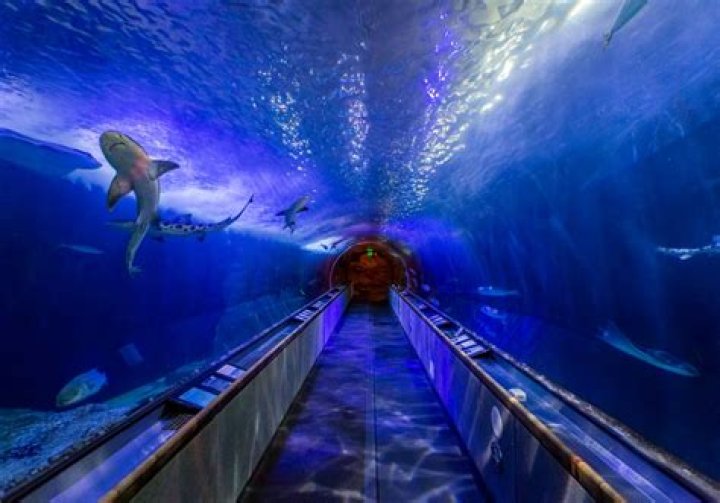 The parking deck attached to the aquarium is enclosed and too low to accommodate even Class B RVs. There are a couple of open-air street lots within an easy walk that will do just fine for Class B and C units. None can handle Class A RVs. A moving sidewall tunnels around and under one of the huge tanks.