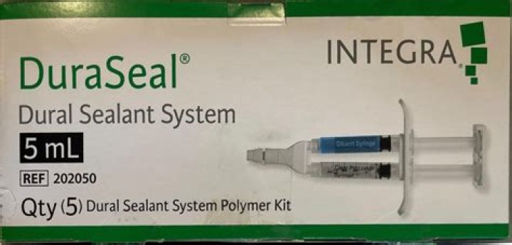 Commonly used adjuncts to sutured repair may include the use of a collagen-based dural implant and/or a sealant. DuraSeal (Integra Life Sciences, Plainsboro, NJ) is a synthetic, absorbable polyethylene glycol (PEG) hydrogel, developed for use as a sealant in cranial and spinal dural repair.