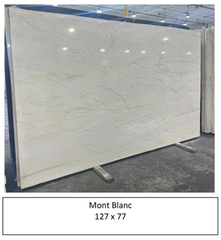 Mont Blanc is quarried from a bedrock quarry in Brazil. It resembles marble in appearance but is much harder and more durable. Because of this, it can be used for kitchen countertops without having the scratching and etching issues experienced with marble.
