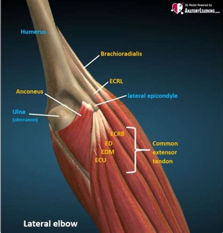 Posterior View: The back view (Posterior View) is showing the muscle and tendon layers of the right arm from the back side. The lateral epicondyle area (the troublesome spot for Tennis Elbow) is best shown from this view. We have tools that will help you to prevent and treat the symptoms of golfer’s or tennis elbow.