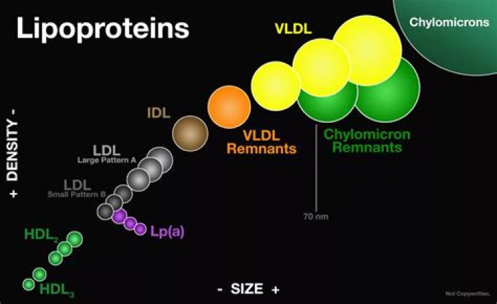 Chylomicrons are the largest particles and possess the greatest proportion of lipid. The other lipoproteins are very low-density lipoprotein (VLDL), intermediate-density lipoprotein (IDL), low-density lipoprotein (LDL), high-density lipoprotein (HDL), and lipoprotein(a).