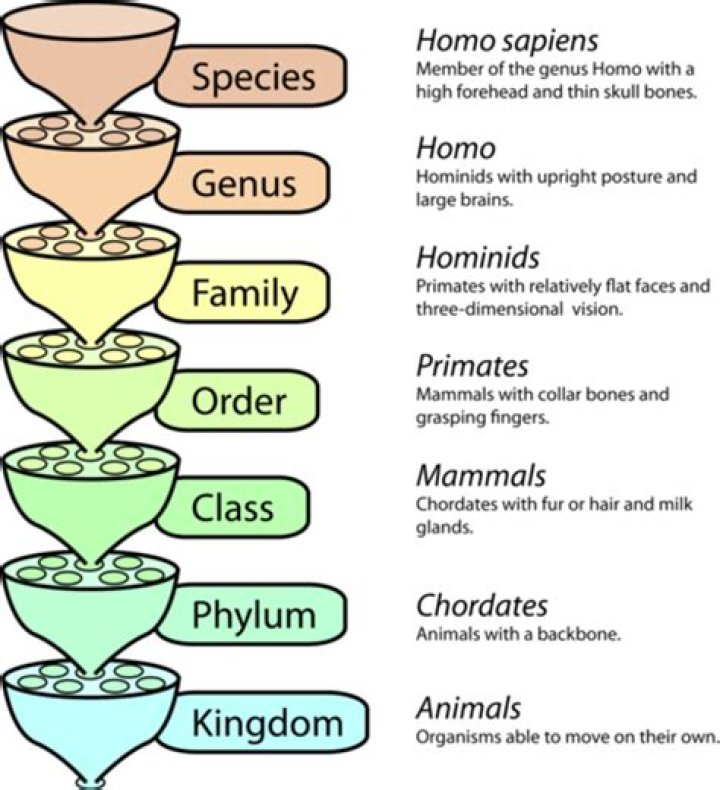 The domains ‘contains’ the most number of organisms, species contain the least number of organisms (see image).