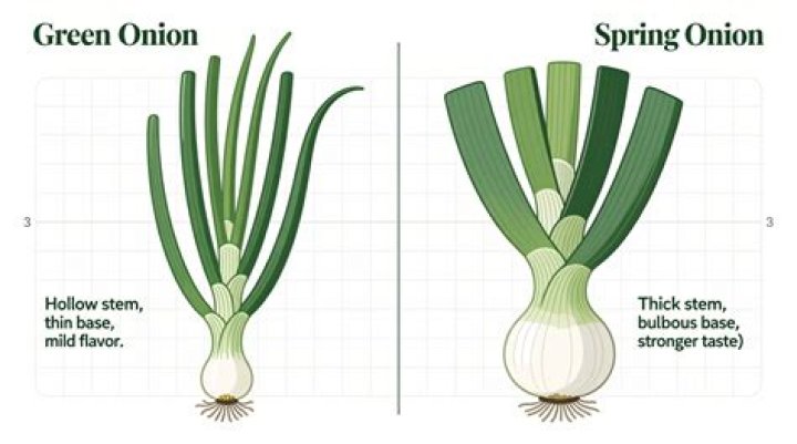 Shallots vs spring onions: what’s the difference? Shallots are golden-brown or red bulbs that resemble garlic. Spring onions are immature onions with a small, barely-defined white bulb and a long, leafy green stem. Spring onions have a sharper, more pungent flavour, while shallots are milder and sweeter in taste.
