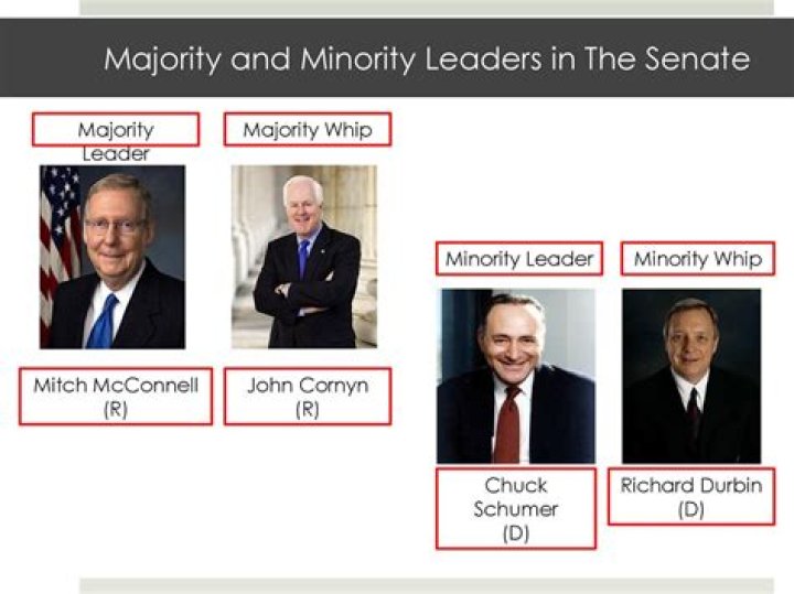 The current leaders are Senators Chuck Schumer (D) of New York and Mitch McConnell (R) of Kentucky. The current assistant leaders, or whips, are Senators Dick Durbin (D) of Illinois and John Thune (R) of South Dakota.What is Senate majority and minority?