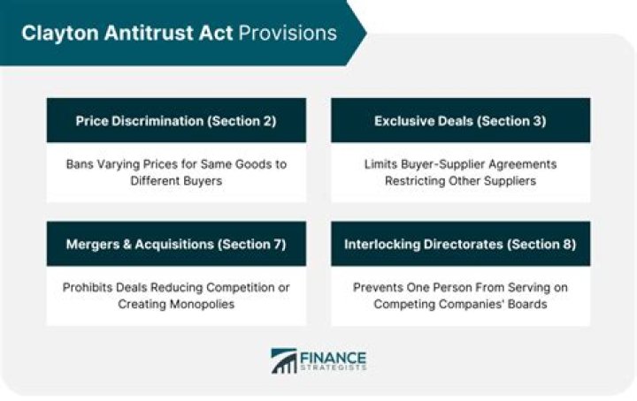 The Clayton Antitrust Act is an amendment passed by U.S. Congress in 1914 that provides further clarification and substance to the Sherman Antitrust Act of 1890 on topics such as price discrimination, price fixing and unfair business practices. You just studied 8 terms!