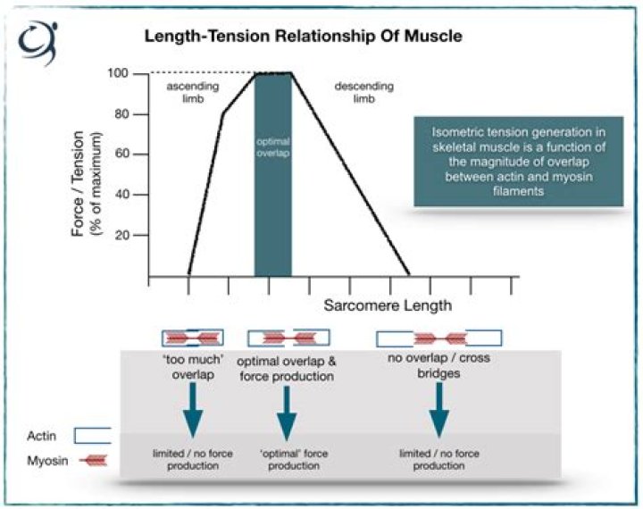 The length-tension (L-T) relationship of muscle basically describes the amount of tension that is produced by a muscle as a feature of it’s length. That is to say, when tested under isometric conditions, the maximal force produced or measured will be different as the muscle lengthens or shortens.