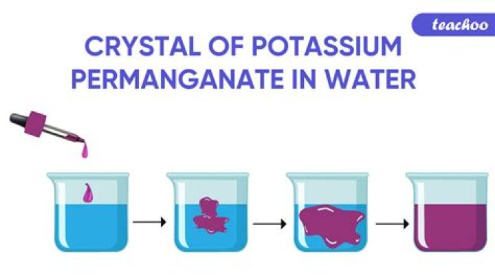Why did the potassium permanganate crystals start to dissolve in water without being stirred?Why did the potassium permanganate crystals in Figure 7.12 on page 197 start to dissolve in water without being stirred or shaken? When potassium permanganate is placed in water its particles become more attracted to the water particles than to its own. This causes its particles to move apart.
