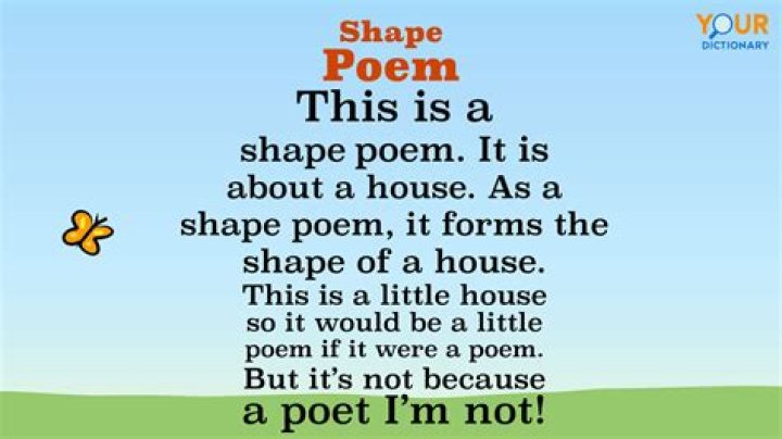 A shape poem, also called a concrete poem or a calligram, describes an object and is written in the shape of that object.