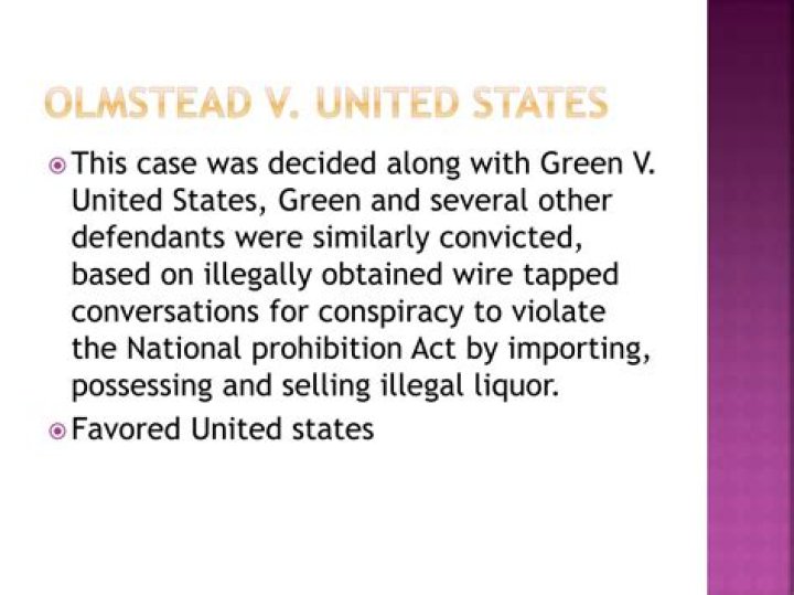 The 1927 case of Olmstead v. United States proved to be an incredibly important and influential decision. … Olmstead argued that the police had violated his Fourth and Fifth Amendment rights. The Supreme Court, in a 5 – 4 decision, ruled that the government could use the evidence obtained from wiretapping.