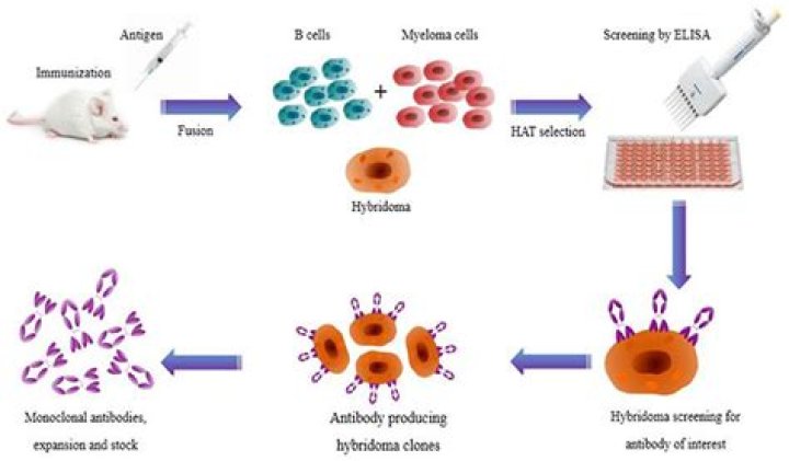 Hybridoma technology is a well-established method to produce monoclonal antibodies (mAbs) specific to antigens of interest. Hybridoma cell lines are formed via fusion between a short-lived antibody-producing B cell and an immortal myeloma cell.